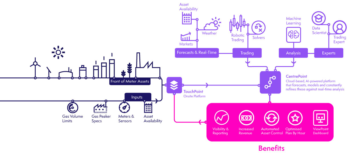The supervised automations from GridBeyond’s Point platform ensure continual trading whilst maintaining operational integrity and contractual obligations. GridBeyond also has the ability to optimise gas contracts for reduced running costs.