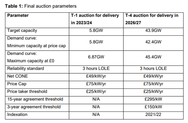 Capacity Market auction parameters set